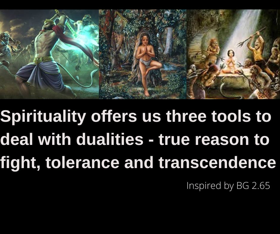Spirituality offers us three tools to deal with dualities – true reason to fight, tolerance and transcendence