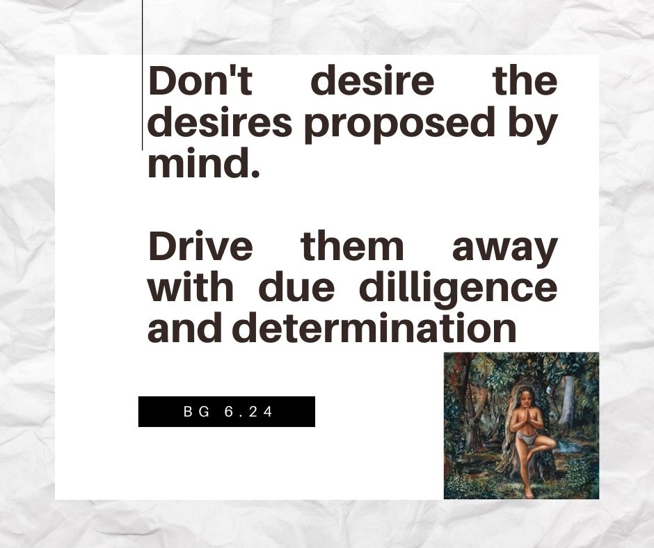 Don’t desire the desires proposed by mind.Drive them away with due dilligence and determinationBG 6.24SHARE