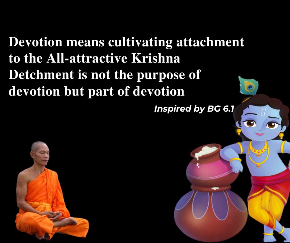 Devotion means cultivating attachment to the All-attractive KrishnaDetchment is not the purpose of devotion but part of devotionInspired by BG 6.1SHARE