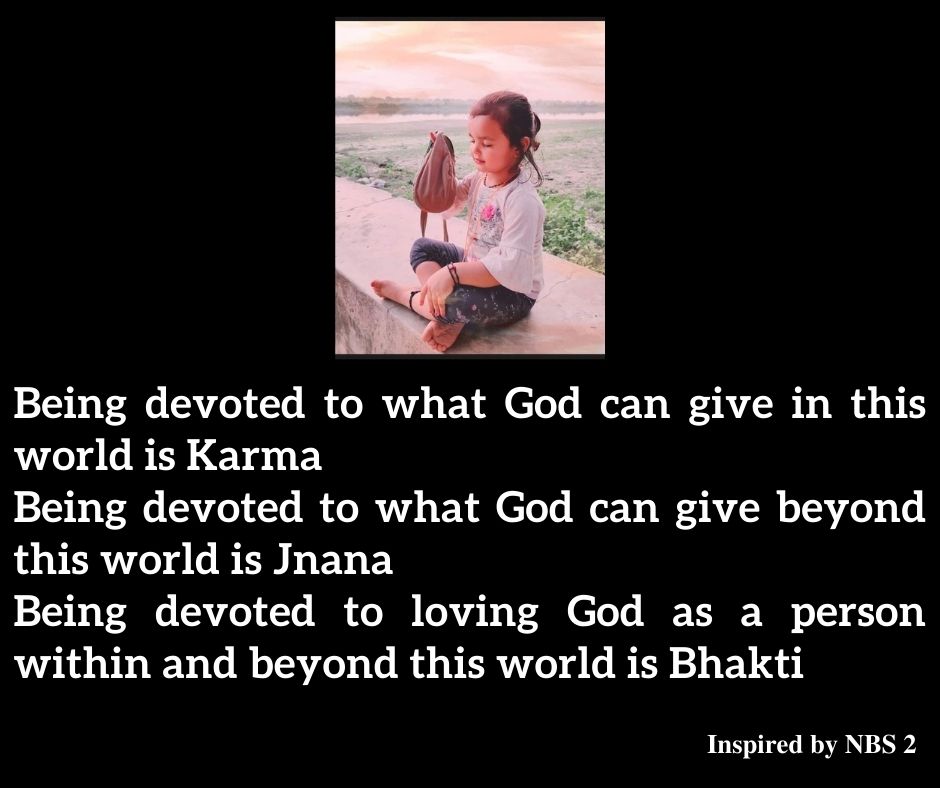 Being devoted to loving God as a person within and beyond this world is Bhakti