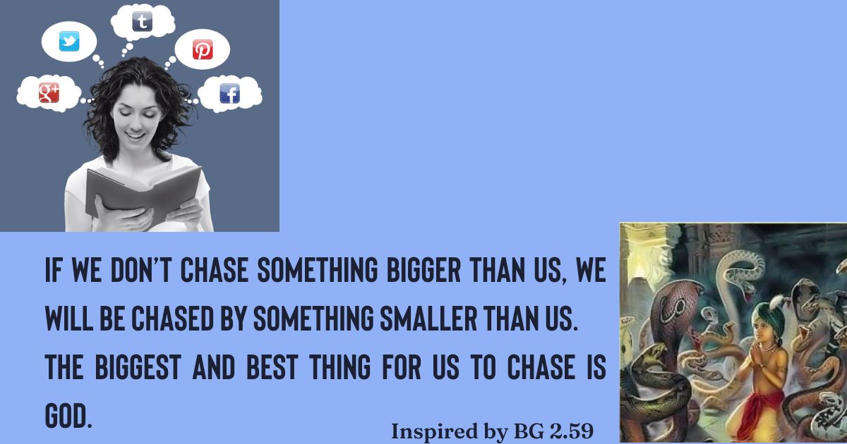 If we don’t chase something bigger than us, we will be chased by something smaller than us.The biggest and best thing for us to chase is God.Inspired by BG 2.59 SHARE