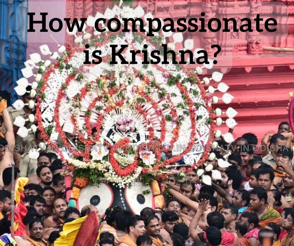 Jagannath Rath Yatra is an occasion where compassion of the Supreme Lord comes to forefront. The Supreme sweet Lord Krishna generally confines himself to the association of his loving associates. Leaving those confines, the Supreme Lord comes out to cast his ever merciful loving glance on the conditioned soul who are suffering the pangs of material existence, bereft of service to his lotus feet. He attracts them and gives them an opportunity to serve him and witness his loving dealings with his associates and also an opportunity to associate with his loving servitors. On the eve of this glorious occasion, let us meditate on the extent, excellence and example of Krishna’s compassion for conditioned souls like us.