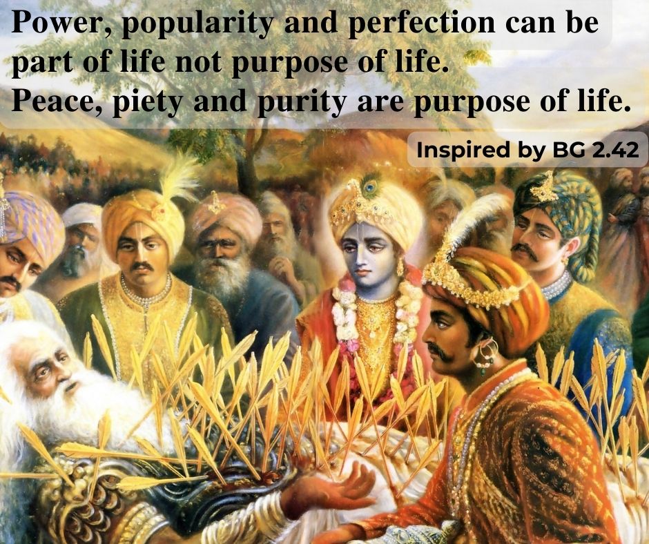Power, popularity and perfection can be part of life not purpose of life.Peace, piety and purity are purpose of life.Inspired by BG 2.42SHARE