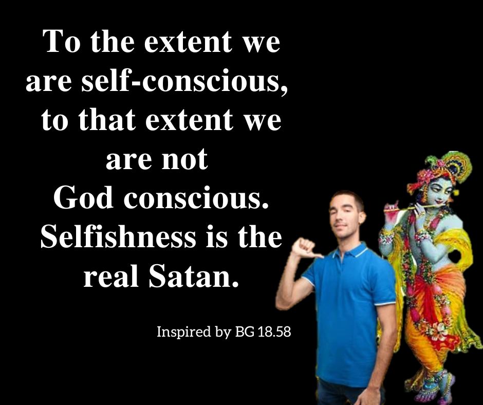 To the extent we are self-conscious,to that extent we are notGod conscious.Selfishness is the real Satan.Inspired by BG 18.58SHARE