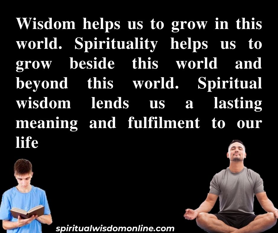 Wisdom helps us to grow in this world. Spirituality helps us to grow beside this world and beyond this world. Spiritual wisdom lends us a lasting meaning and fulfilment to our life